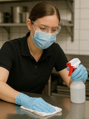 Workers — The backbone of daily cleaning. Trained to clean every surface and piece of equipment top-to-bottom while preventing slips, burns, electrical hazards, contamination, and fire risks. Training emphasizes PPE, first aid, emergency response, and safe chemical handling.